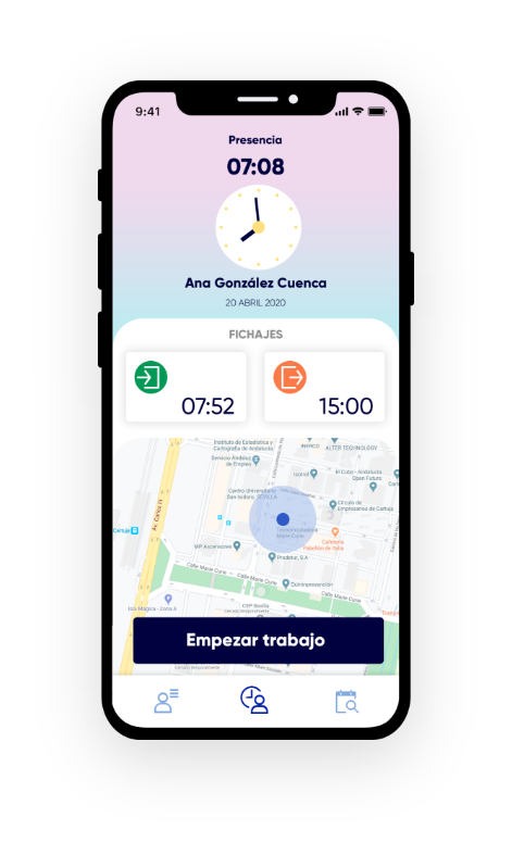 CONTROL HORARIO Funcionalidades destacadas La forma más fácil y sencilla de gestionar tu registro laboral. Facilita la gestión de horarios de tus empleados y de los responsables de RRHH con Track4Face Tendrás a tu disposición Web y App multidispositivo Ficha de manera rápida y sencilla, con opción de geolocalización. Revisa tus horas trabajadas e historial de un vistazo. Gracias al reconocimiento facial no tendrás que memorizar más contraseñas. Gestiona fichajes y horas trabajadas en pocos pasos. Gestiona fichajes y horas trabajadas en pocos pasos. Obtén información detallada y actualizada en todo momento.Control de horas extra